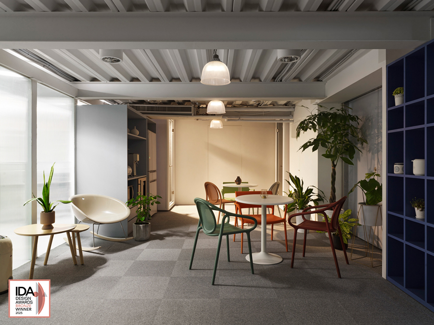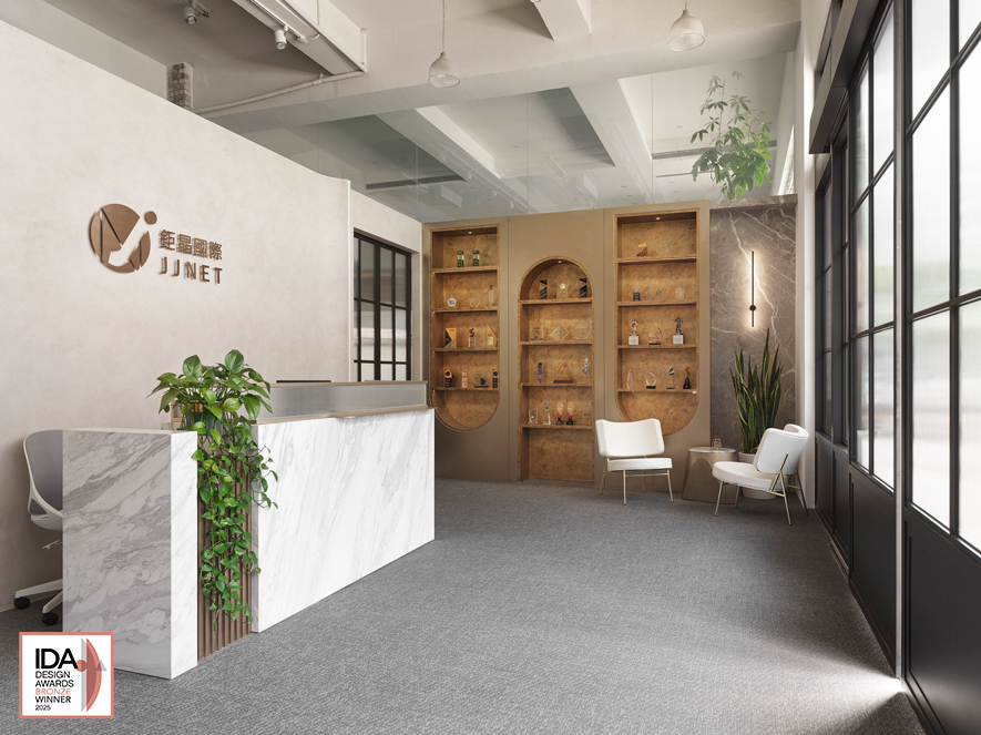美國IDA國際設計大獎自創新性、實用性和發展性等多種面向為評選標準,旨在發掘、表彰「設立新標準」與「突破室內設計界限」、「改變人們生活和工作空間」的優秀設計師及團隊。澄境設計 設計總監 鄭抿丹 視業主需求為首要考量,以光影敘事為設計主軸,透過玄關背牆的弧形線條柔化商業空間的冷冽感,並採用大地色調與自然綠意交織出寧靜氛圍。辦公空間《淨光敘簡》將企業識別、員工需求與美學思維完整融合,符合IDA設計大獎「改變人們生活和工作空間」的核心宗旨,於本次賽事中喜獲銅獎佳績!