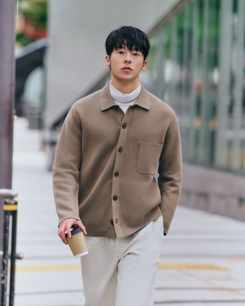 - 早秋造型就用單穿與疊搭打造出質感品味,近期於日、韓社群網站洗版的米蘭羅紋襯衫式開襟外套,同時具挺度與彈性的針織單品,一穿就可打造流行GEEK風格、也可撞色搭配休閒短褲,讓悠閒中帶有設計巧思。