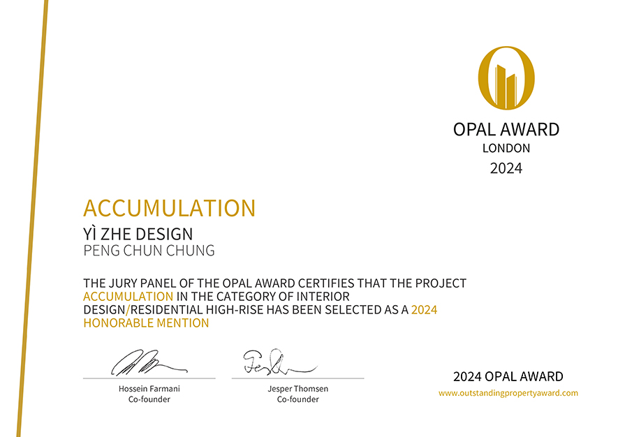 OUTSTANDING PROPERTY AWARD LONDON,OPAL(英國倫敦傑出地產大獎)由全球知名企業集團Farmani Group組織,並以招攬全球最佳建築師、室內設計師與房地產開發商為目標,在創造異業菁英聯合平台的同時,找尋各地最富創造力、革新感、社會影響力與永續性的設計方案。參與者有機會替自己最新穎的企劃,博得國際能見度,並且和產業的先驅及專業人士進行交流。