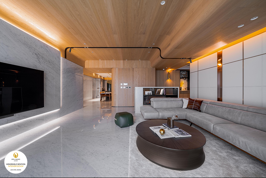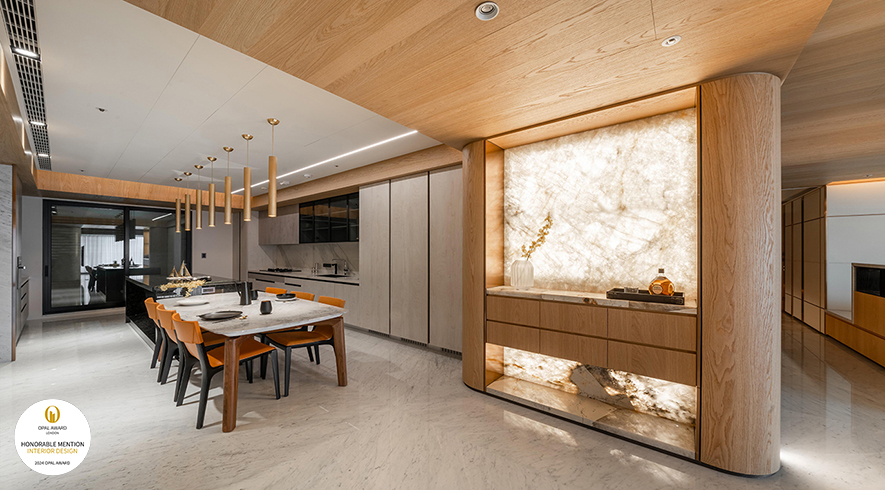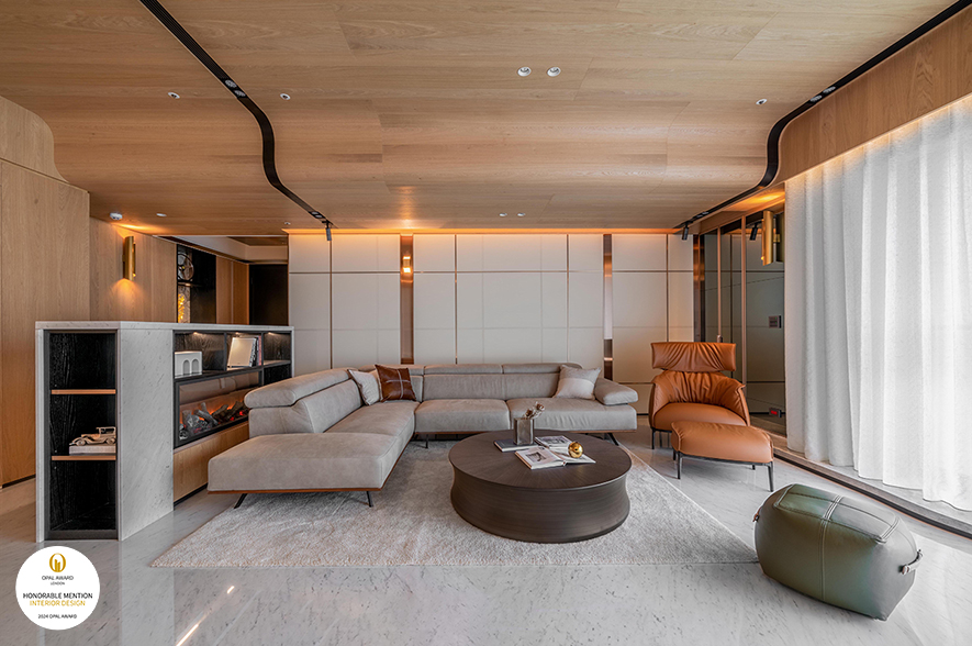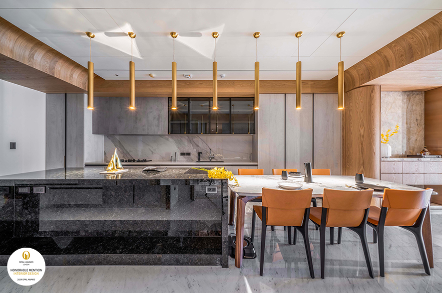 此案為業主第二間自宅,藝喆設計 設計總監 彭俊中 將作品定名為《Accumulation》,意即以「傳承」為設計主軸,並於居者起家厝的既有樣貌為基底,進一步在其上豐富空間量體及生活機能,透過簡單俐落的敞朗環境,打造兼顧未來規劃的舒適美作,一舉奪下本屆賽事「Honorable Mention」榮譽!