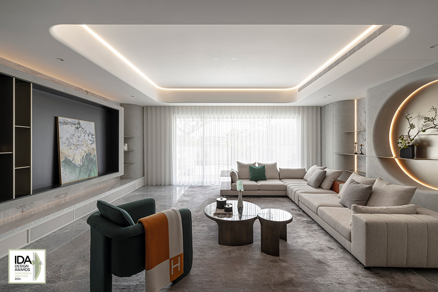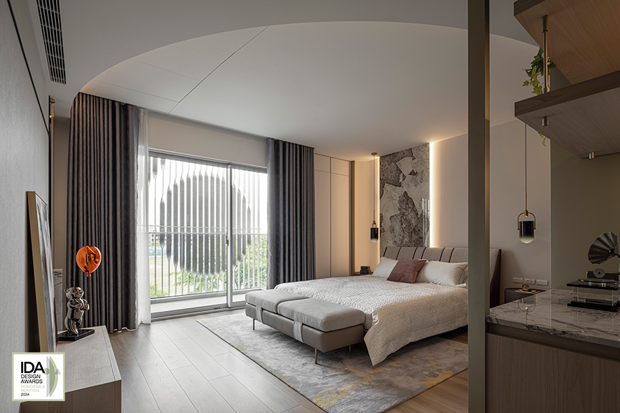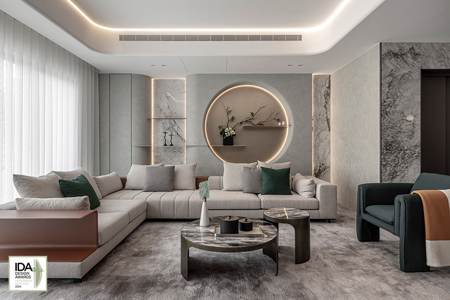 仝育設計 設計總監 莊媛婷、創意總監 鄭瑞文 率領設計團隊,以滿盈人文暖意的優美藝宅《是獨一也無二》贏獲本屆賽事評審團青睞,摘下「Honorable Mention」榮光!設計團隊利用擅長形構的東方意境,藉由象徵「圓月」、「浮雲」等山水自然詩意造景,為現代西式的住宅空間添入古典風情,賦予住家舒適輕奢的生活質感。「家」是人們身心靈的重要歸所,透過設計讓人與環境相互共鳴,創造身心靈和諧幸福的宜居居所。